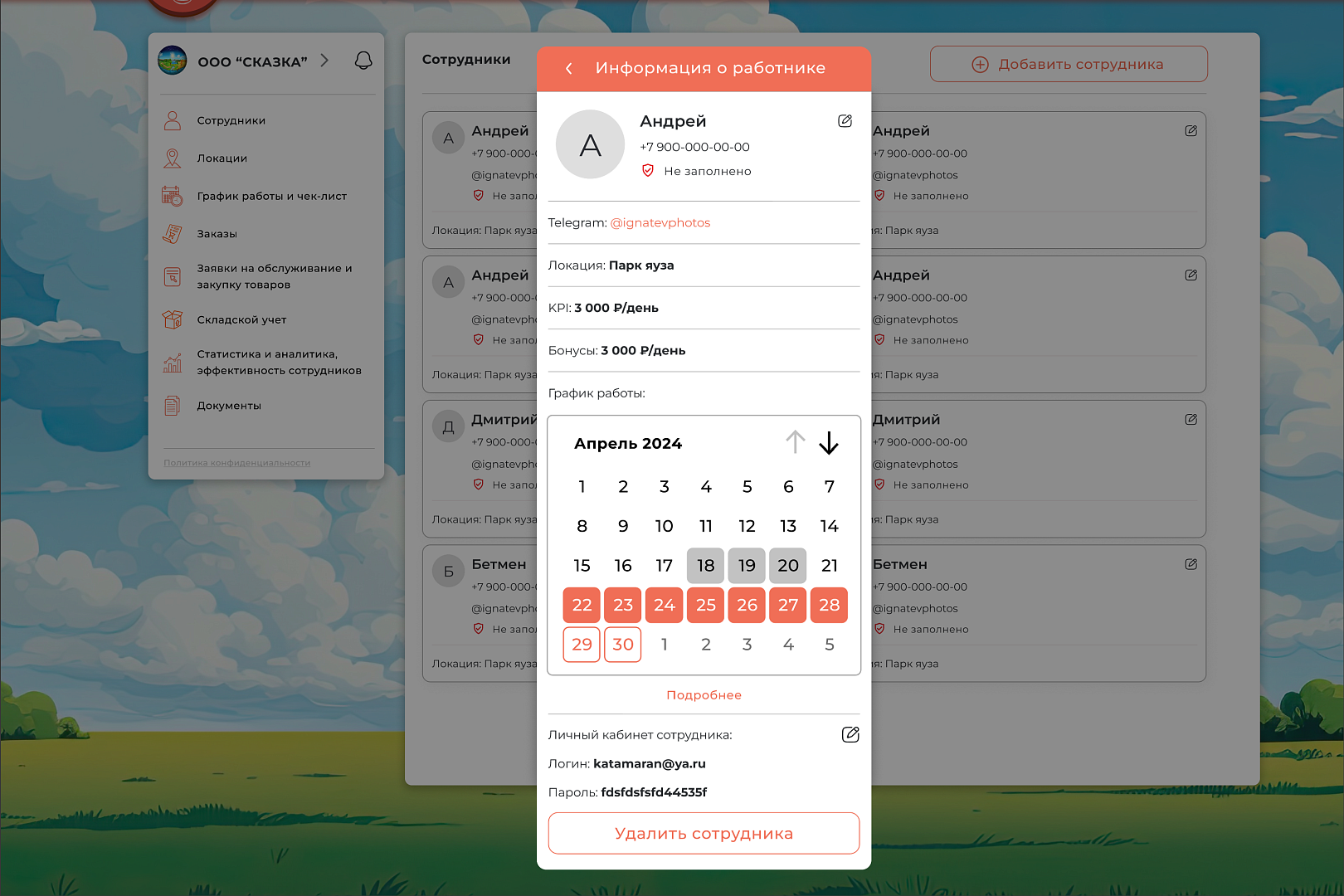 Получаете доступ к системе автоматизированного управления бизнесом (продажи, персонал, остатки, заявки, эффективность и другие).