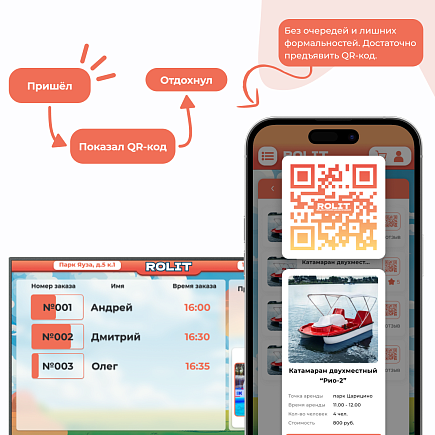 Всё, что вам нужно сделать по приезде на локацию — это показать QR-код со своего телефона. Система мгновенно его считает, и вы проходите без очередей. Это экономит ваше время и делает отдых максимально комфортным.